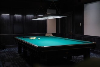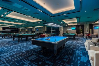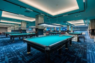 16 бильярдных столов, 1 стол для американского пула и VIP-зал. Все столы сделаны из массива ясеня по индивидуальному заказу. При планировке помещения были учтены все нюансы для комфортной игры: цельные деревянные кии, камеры на 10-ти столах для фиксации игры и тренировок, шкафчики для посетителей, мастерская, а также магазин бильярдного оборудования.
